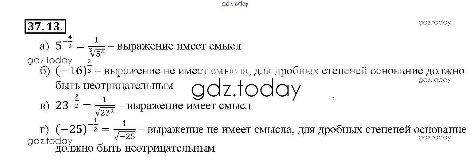 На страницах сайта gdz.today вы найдете учебный и вспомогательный материал, направленный на улучшения знаний школьной программы. ГДЗ - онлайн мир знаний §37. Обобщение понятия о показателе степени Глава 6 37. 13 Задачнику по Алгебре для 10-11 класса Мордкович, Денищева Базовый уровень Мнемозина 2015