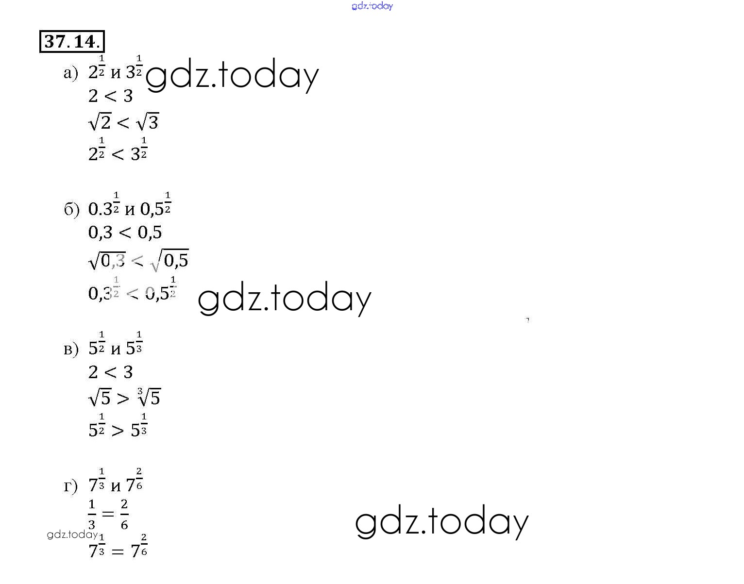 На страницах сайта gdz.today вы найдете учебный и вспомогательный материал, направленный на улучшения знаний школьной программы. ГДЗ - онлайн мир знаний §37. Обобщение понятия о показателе степени Глава 6 37. 14 Задачнику по Алгебре для 10-11 класса Мордкович, Денищева Базовый уровень Мнемозина 2015