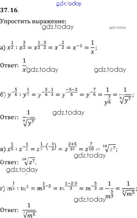 На страницах сайта gdz.today вы найдете учебный и вспомогательный материал, направленный на улучшения знаний школьной программы. ГДЗ - онлайн мир знаний §37. Обобщение понятия о показателе степени Глава 6 37. 16 Задачнику по Алгебре для 10-11 класса Мордкович, Денищева Базовый уровень Мнемозина 2015