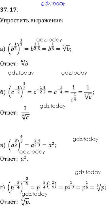 На страницах сайта gdz.today вы найдете учебный и вспомогательный материал, направленный на улучшения знаний школьной программы. ГДЗ - онлайн мир знаний §37. Обобщение понятия о показателе степени Глава 6 37. 17 Задачнику по Алгебре для 10-11 класса Мордкович, Денищева Базовый уровень Мнемозина 2015