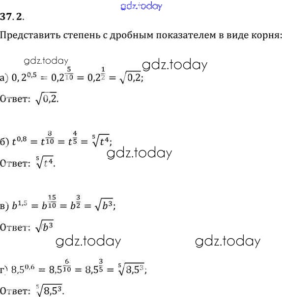 Ответы к §37. Обобщение понятия о показателе степени Глава 6 37. 2 Задачнику по Алгебре для 10-11 класса Мордкович, Денищева Базовый уровень Мнемозина 2015