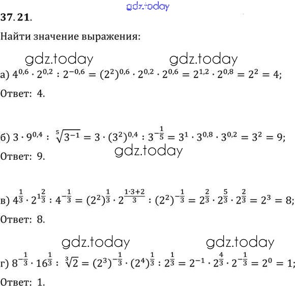 Ответы к §37. Обобщение понятия о показателе степени Глава 6 37. 21 Задачнику по Алгебре для 10-11 класса Мордкович, Денищева Базовый уровень Мнемозина 2015
