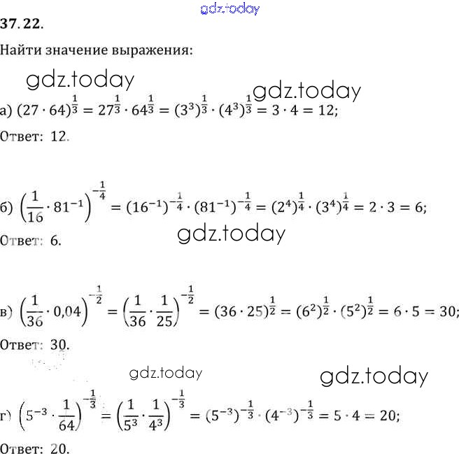 На страницах сайта gdz.today вы найдете учебный и вспомогательный материал, направленный на улучшения знаний школьной программы. ГДЗ - онлайн мир знаний §37. Обобщение понятия о показателе степени Глава 6 37. 22 Задачнику по Алгебре для 10-11 класса Мордкович, Денищева Базовый уровень Мнемозина 2015