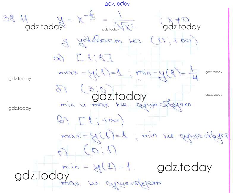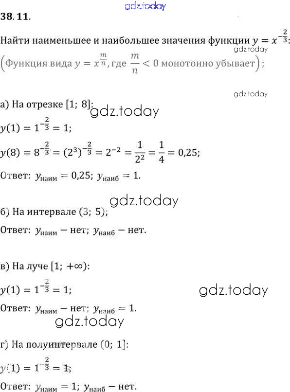 Ответы к §38. Степенные функции, их свойства и графики Глава 6 38. 11 Задачнику по Алгебре для 10-11 класса Мордкович, Денищева Базовый уровень Мнемозина 2015
