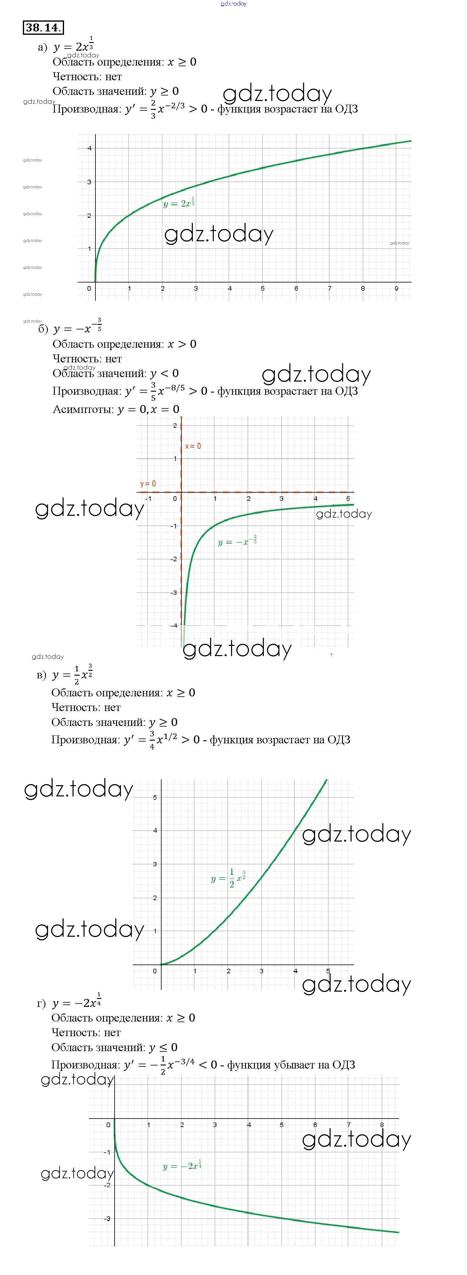 Ответы к §38. Степенные функции, их свойства и графики Глава 6 38. 14 Задачнику по Алгебре для 10-11 класса Мордкович, Денищева Базовый уровень Мнемозина 2015