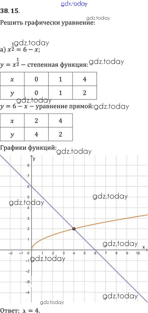 Ответы к §38. Степенные функции, их свойства и графики Глава 6 38. 15 Задачнику по Алгебре для 10-11 класса Мордкович, Денищева Базовый уровень Мнемозина 2015