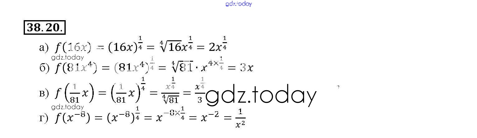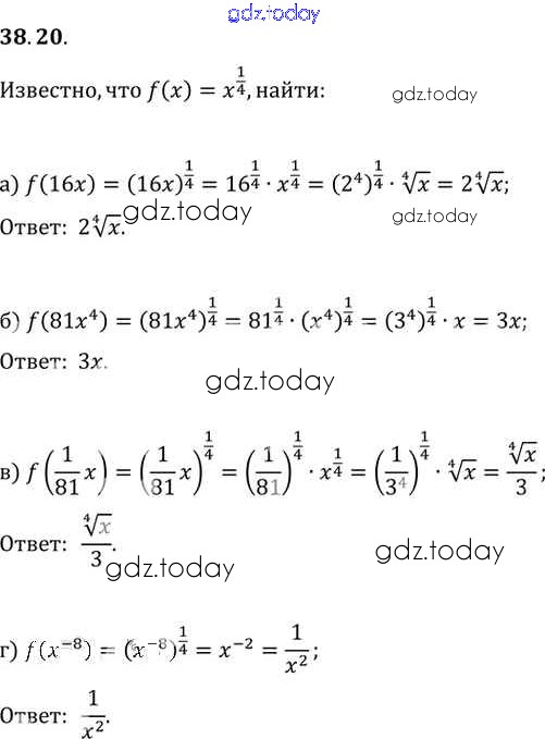 Ответы к §38. Степенные функции, их свойства и графики Глава 6 38. 20 Задачнику по Алгебре для 10-11 класса Мордкович, Денищева Базовый уровень Мнемозина 2015
