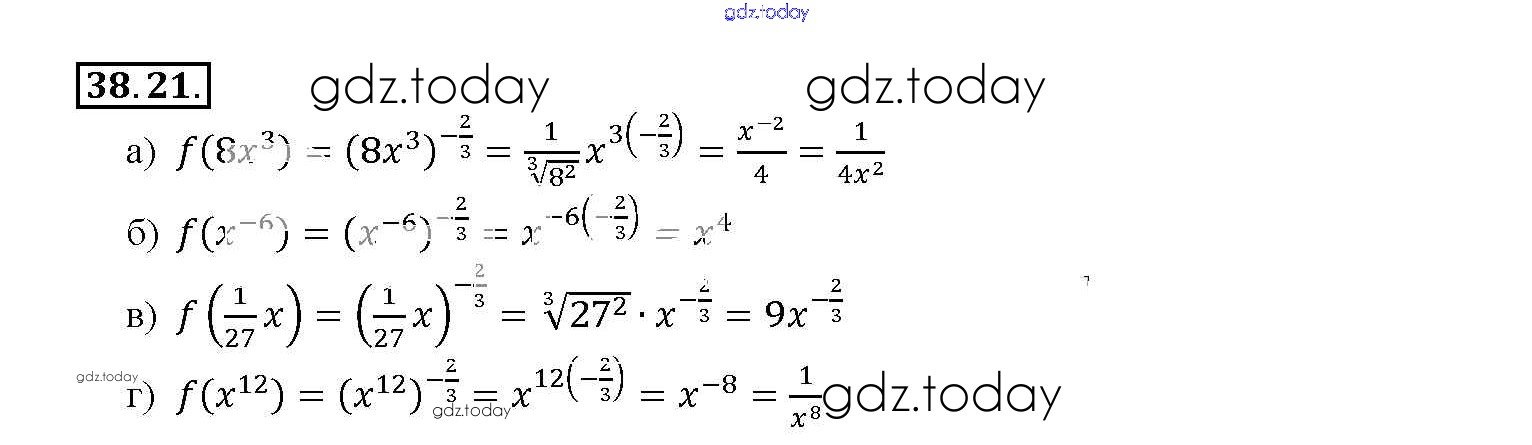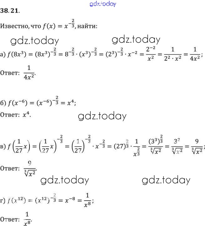 Ответы к §38. Степенные функции, их свойства и графики Глава 6 38. 21 Задачнику по Алгебре для 10-11 класса Мордкович, Денищева Базовый уровень Мнемозина 2015