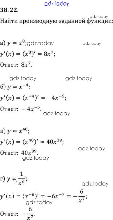 Ответы к §38. Степенные функции, их свойства и графики Глава 6 38. 22 Задачнику по Алгебре для 10-11 класса Мордкович, Денищева Базовый уровень Мнемозина 2015