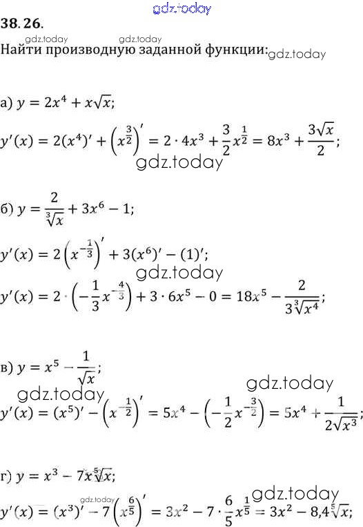 Ответы к §38. Степенные функции, их свойства и графики Глава 6 38. 26 Задачнику по Алгебре для 10-11 класса Мордкович, Денищева Базовый уровень Мнемозина 2015