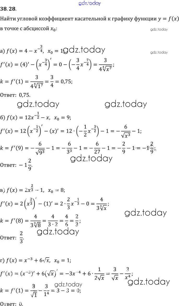 Ответы к §38. Степенные функции, их свойства и графики Глава 6 38. 28 Задачнику по Алгебре для 10-11 класса Мордкович, Денищева Базовый уровень Мнемозина 2015