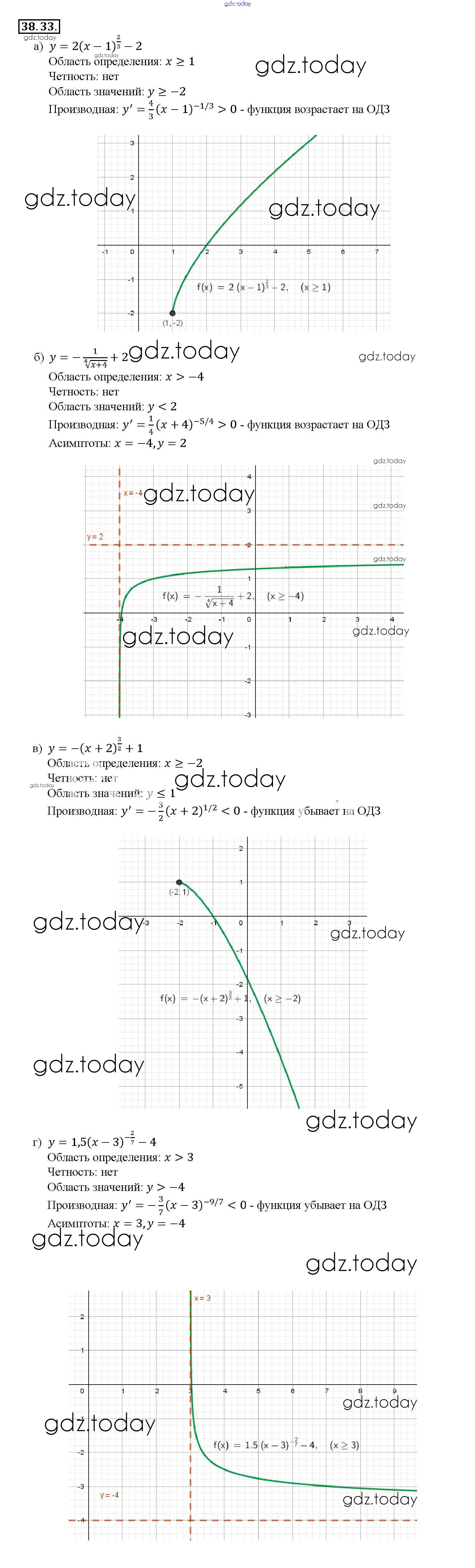 Ответы к §38. Степенные функции, их свойства и графики Глава 6 38. 33 Задачнику по Алгебре для 10-11 класса Мордкович, Денищева Базовый уровень Мнемозина 2015