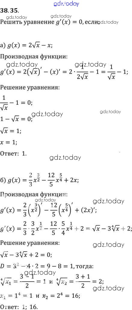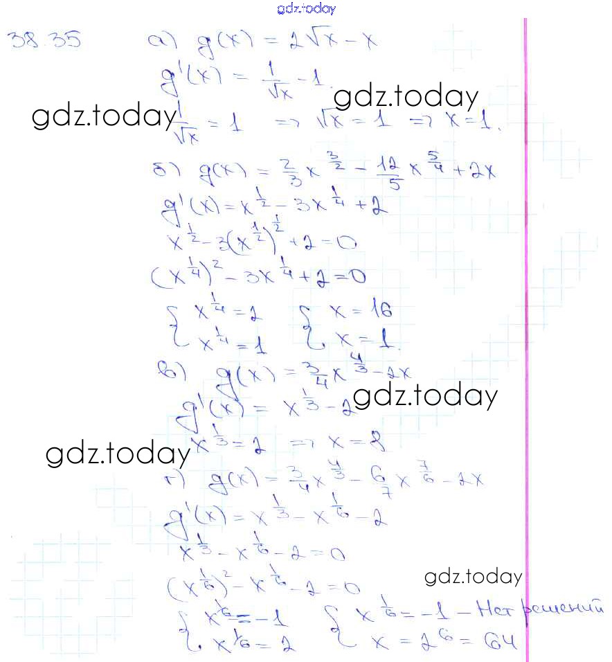 Ответы к §38. Степенные функции, их свойства и графики Глава 6 38. 35 Задачнику по Алгебре для 10-11 класса Мордкович, Денищева Базовый уровень Мнемозина 2015