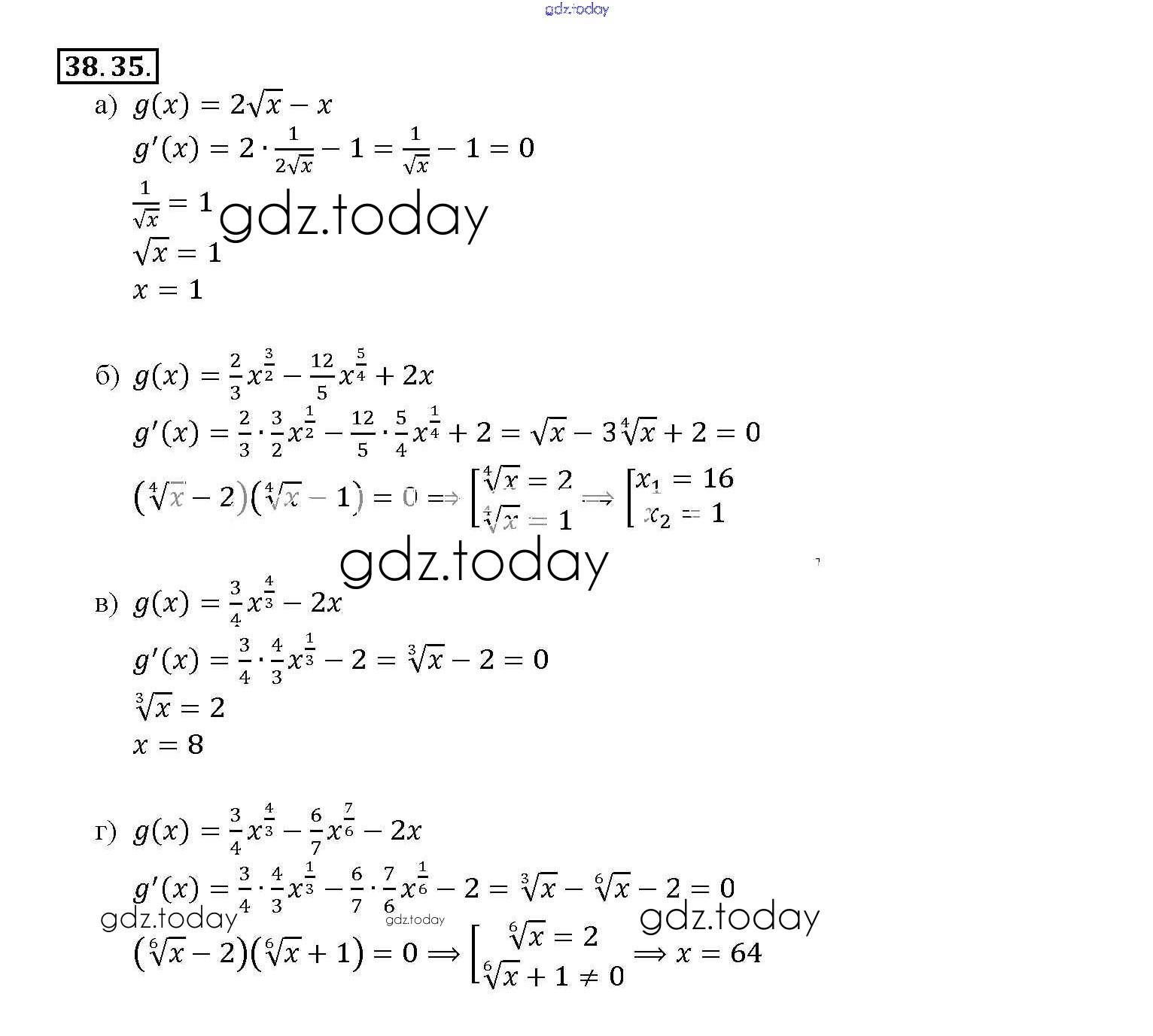 На страницах сайта gdz.today вы найдете учебный и вспомогательный материал, направленный на улучшения знаний школьной программы. ГДЗ - онлайн мир знаний §38. Степенные функции, их свойства и графики Глава 6 38. 35 Задачнику по Алгебре для 10-11 класса Мордкович, Денищева Базовый уровень Мнемозина 2015
