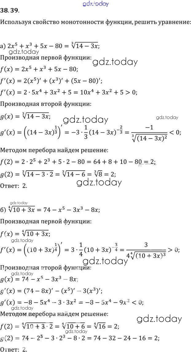 Ответы к §38. Степенные функции, их свойства и графики Глава 6 38. 39 Задачнику по Алгебре для 10-11 класса Мордкович, Денищева Базовый уровень Мнемозина 2015