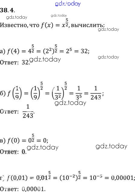 Ответы к §38. Степенные функции, их свойства и графики Глава 6 38. 4 Задачнику по Алгебре для 10-11 класса Мордкович, Денищева Базовый уровень Мнемозина 2015