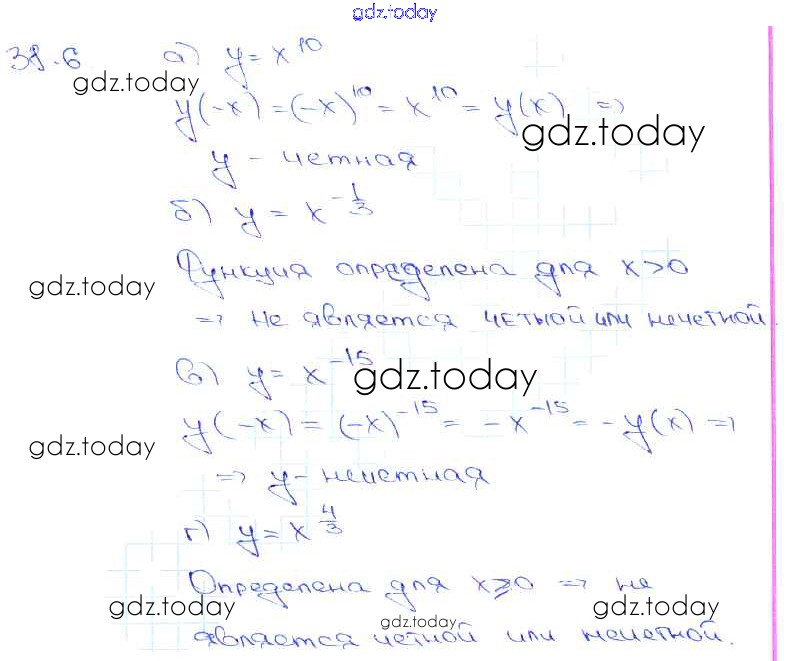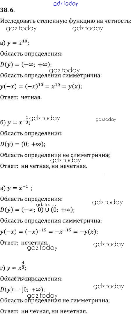 Ответы к §38. Степенные функции, их свойства и графики Глава 6 38. 6 Задачнику по Алгебре для 10-11 класса Мордкович, Денищева Базовый уровень Мнемозина 2015