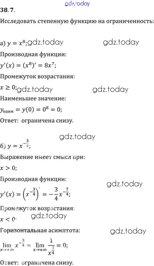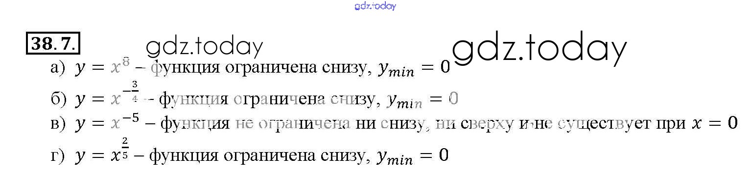 Ответы к §38. Степенные функции, их свойства и графики Глава 6 38. 7 Задачнику по Алгебре для 10-11 класса Мордкович, Денищева Базовый уровень Мнемозина 2015
