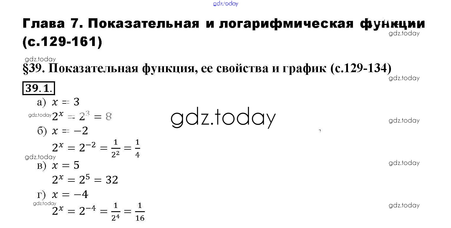 На страницах сайта gdz.today вы найдете учебный и вспомогательный материал, направленный на улучшения знаний школьной программы. ГДЗ - онлайн мир знаний §39. Показательная функция, ее свойства и график Глава 7 39. 1 Задачнику по Алгебре для 10-11 класса Мордкович, Денищева Базовый уровень Мнемозина 2015