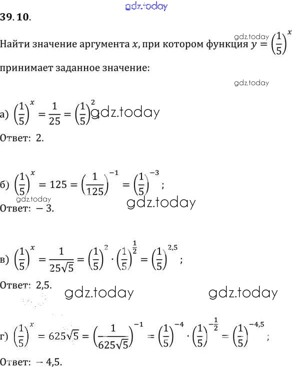 Ответы к §39. Показательная функция, ее свойства и график Глава 7 39. 10 Задачнику по Алгебре для 10-11 класса Мордкович, Денищева Базовый уровень Мнемозина 2015