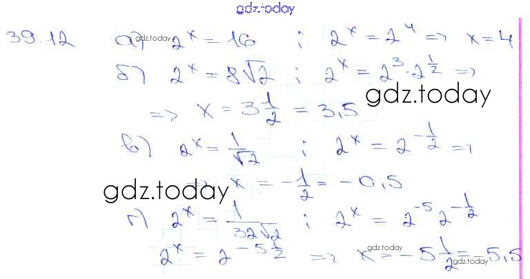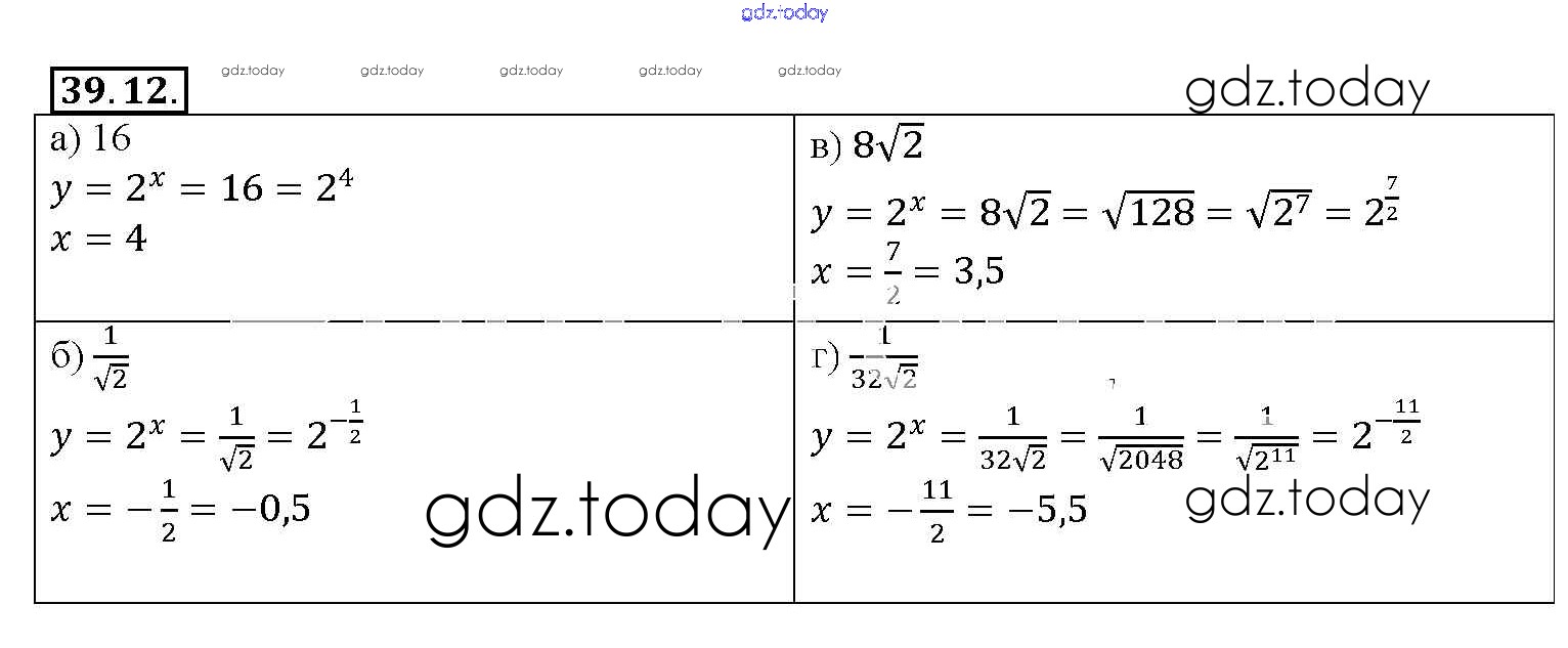 Ответы к §39. Показательная функция, ее свойства и график Глава 7 39. 12 Задачнику по Алгебре для 10-11 класса Мордкович, Денищева Базовый уровень Мнемозина 2015