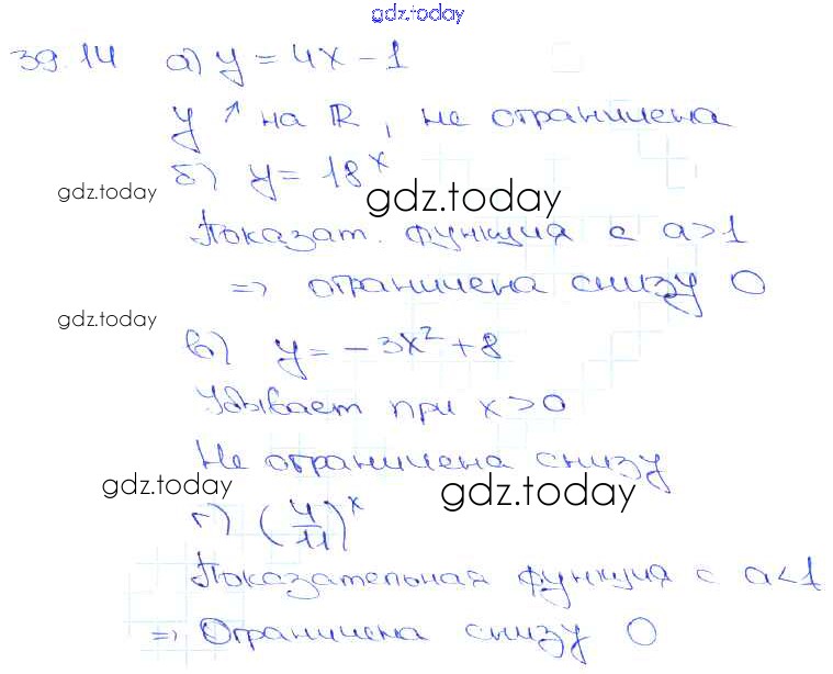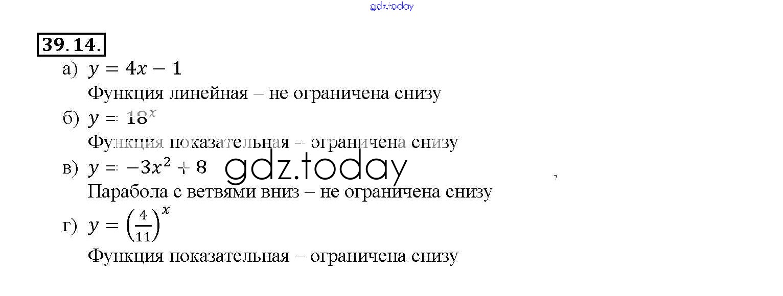 На страницах сайта gdz.today вы найдете учебный и вспомогательный материал, направленный на улучшения знаний школьной программы. ГДЗ - онлайн мир знаний §39. Показательная функция, ее свойства и график Глава 7 39. 14 Задачнику по Алгебре для 10-11 класса Мордкович, Денищева Базовый уровень Мнемозина 2015