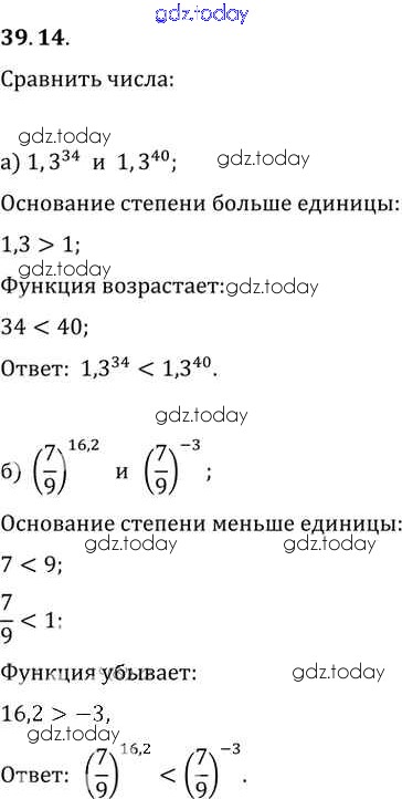 Ответы к §39. Показательная функция, ее свойства и график Глава 7 39. 14 Задачнику по Алгебре для 10-11 класса Мордкович, Денищева Базовый уровень Мнемозина 2015