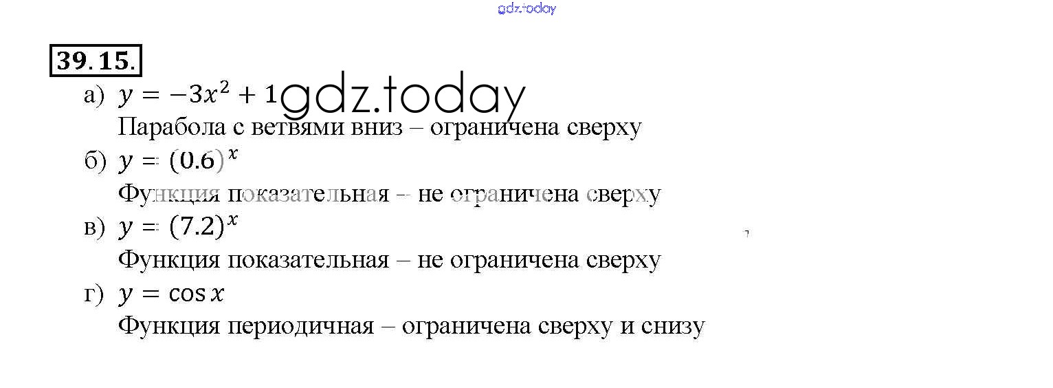 На страницах сайта gdz.today вы найдете учебный и вспомогательный материал, направленный на улучшения знаний школьной программы. ГДЗ - онлайн мир знаний §39. Показательная функция, ее свойства и график Глава 7 39. 15 Задачнику по Алгебре для 10-11 класса Мордкович, Денищева Базовый уровень Мнемозина 2015