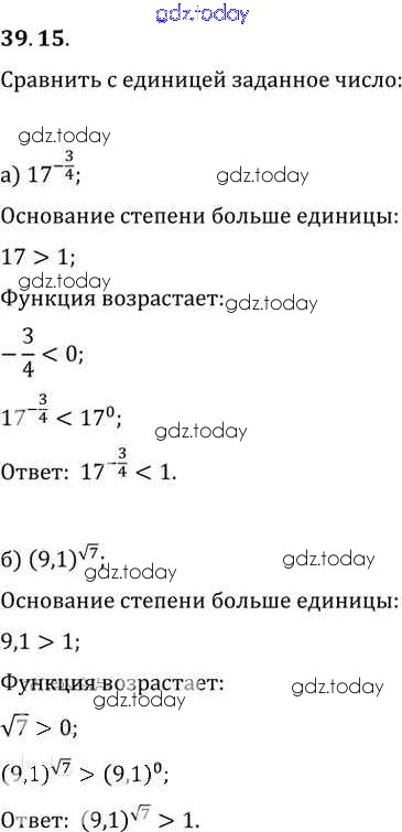 Ответы к §39. Показательная функция, ее свойства и график Глава 7 39. 15 Задачнику по Алгебре для 10-11 класса Мордкович, Денищева Базовый уровень Мнемозина 2015