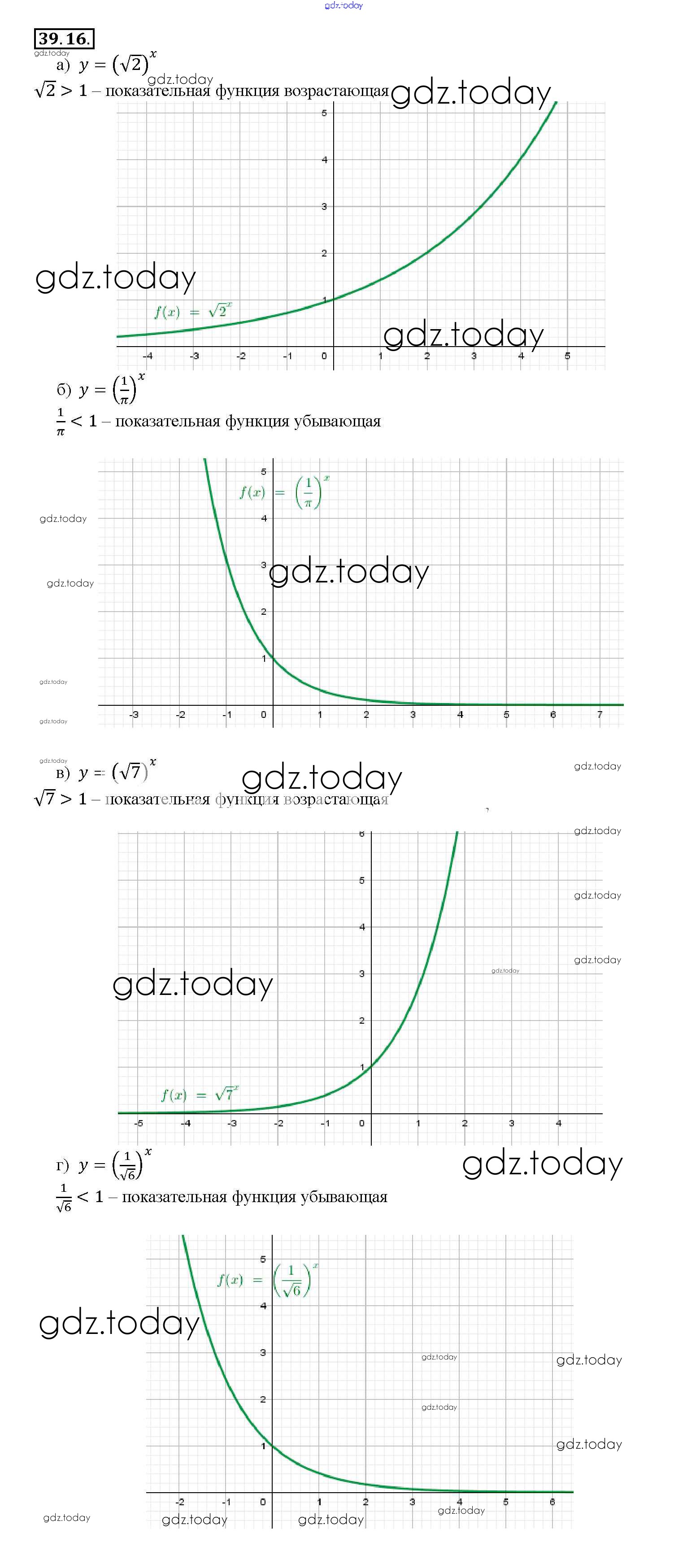 На страницах сайта gdz.today вы найдете учебный и вспомогательный материал, направленный на улучшения знаний школьной программы. ГДЗ - онлайн мир знаний §39. Показательная функция, ее свойства и график Глава 7 39. 16 Задачнику по Алгебре для 10-11 класса Мордкович, Денищева Базовый уровень Мнемозина 2015