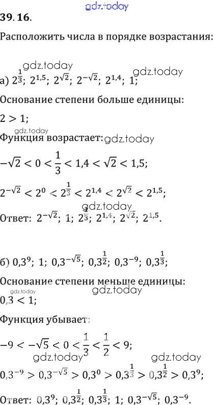 Ответы к §39. Показательная функция, ее свойства и график Глава 7 39. 16 Задачнику по Алгебре для 10-11 класса Мордкович, Денищева Базовый уровень Мнемозина 2015