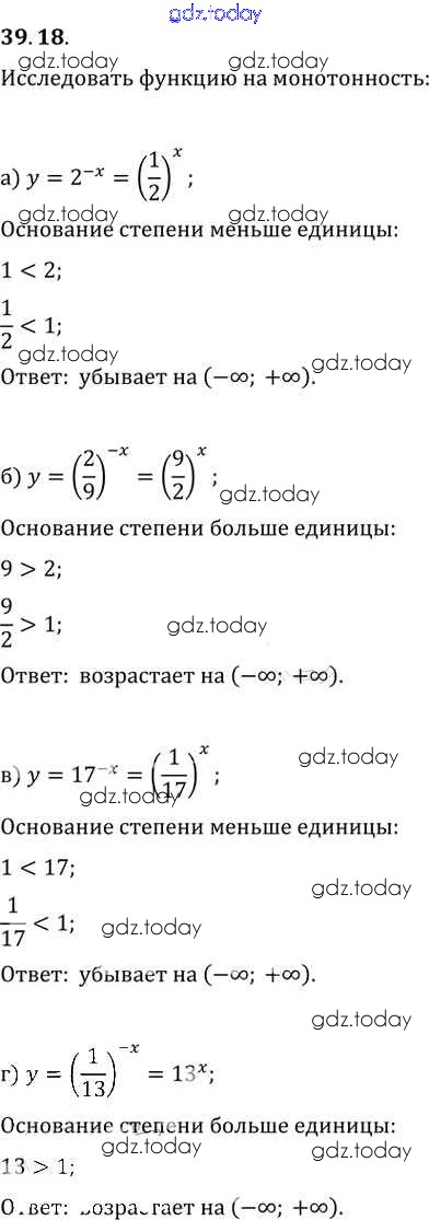 Ответы к §39. Показательная функция, ее свойства и график Глава 7 39. 18 Задачнику по Алгебре для 10-11 класса Мордкович, Денищева Базовый уровень Мнемозина 2015