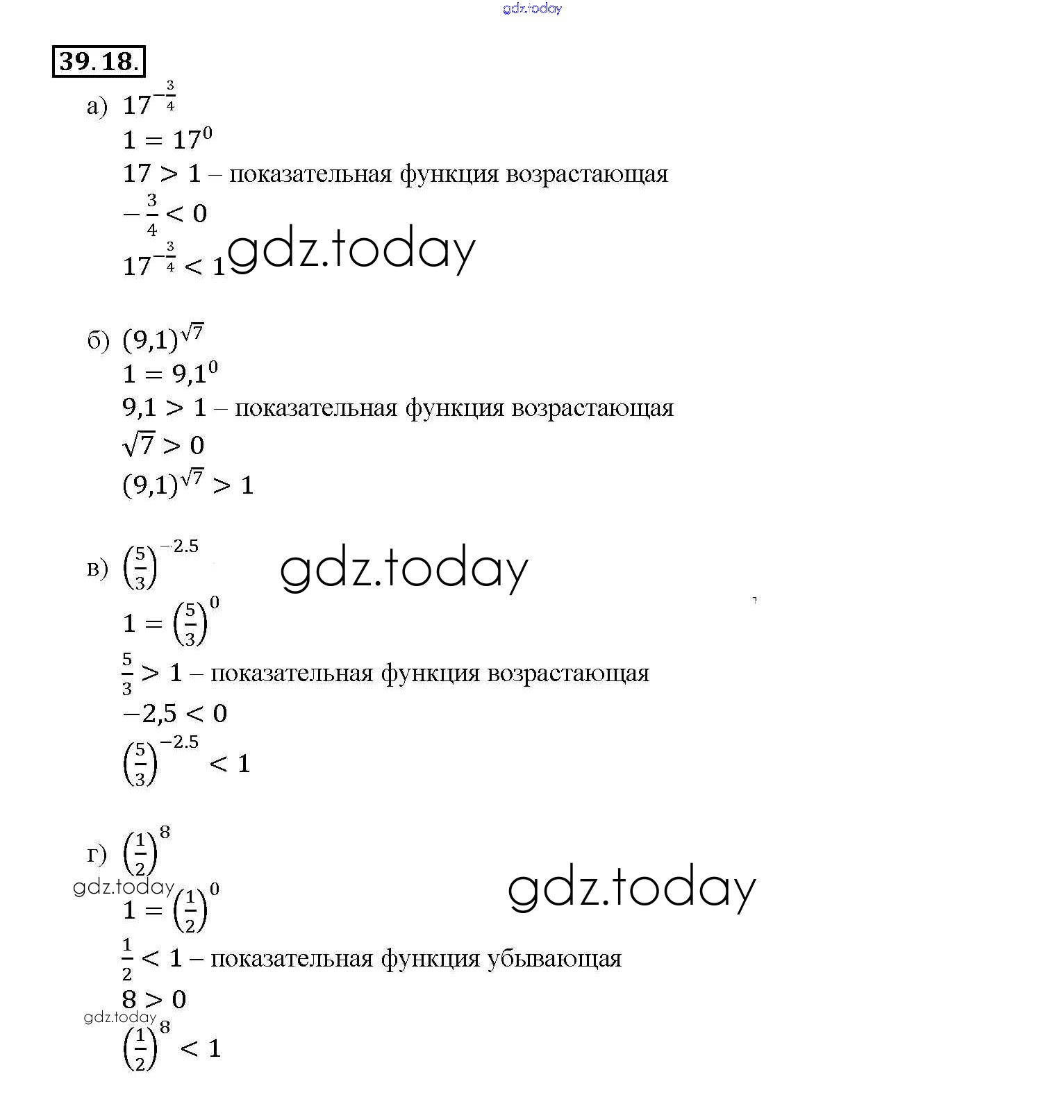 На страницах сайта gdz.today вы найдете учебный и вспомогательный материал, направленный на улучшения знаний школьной программы. ГДЗ - онлайн мир знаний §39. Показательная функция, ее свойства и график Глава 7 39. 18 Задачнику по Алгебре для 10-11 класса Мордкович, Денищева Базовый уровень Мнемозина 2015