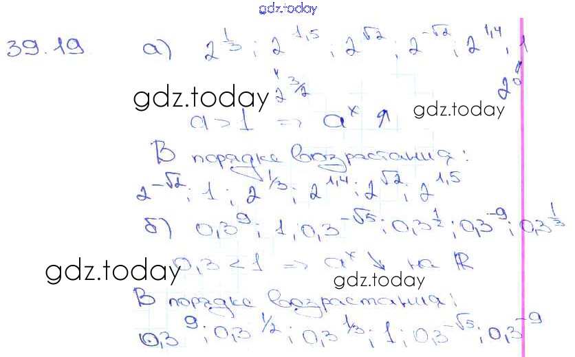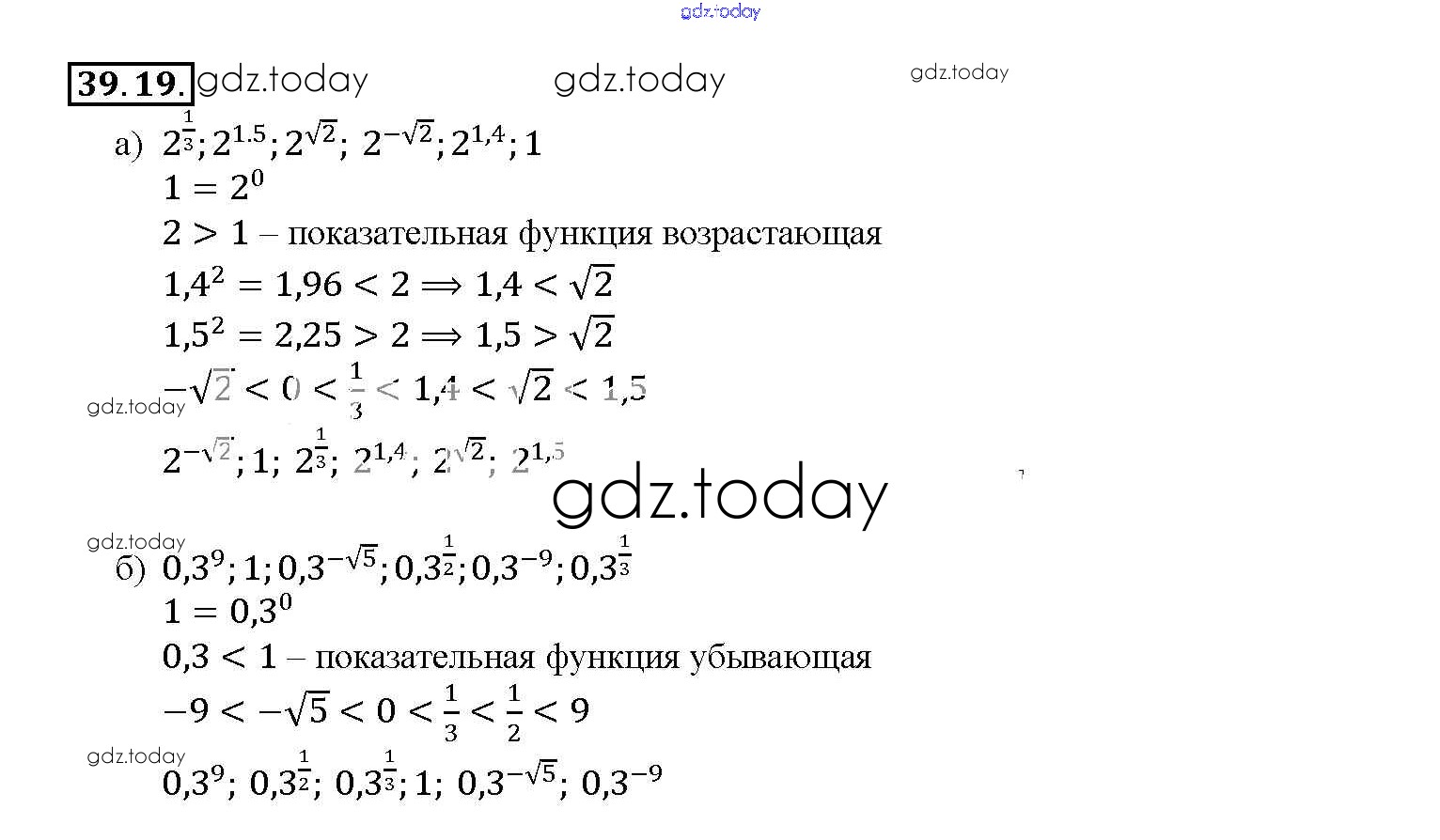 На страницах сайта gdz.today вы найдете учебный и вспомогательный материал, направленный на улучшения знаний школьной программы. ГДЗ - онлайн мир знаний §39. Показательная функция, ее свойства и график Глава 7 39. 19 Задачнику по Алгебре для 10-11 класса Мордкович, Денищева Базовый уровень Мнемозина 2015