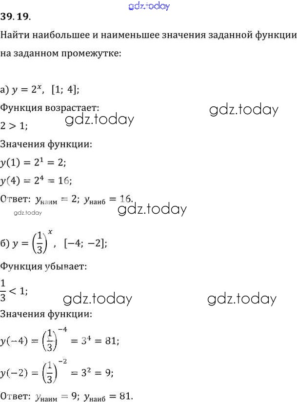 Ответы к §39. Показательная функция, ее свойства и график Глава 7 39. 19 Задачнику по Алгебре для 10-11 класса Мордкович, Денищева Базовый уровень Мнемозина 2015