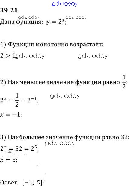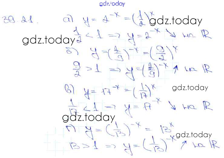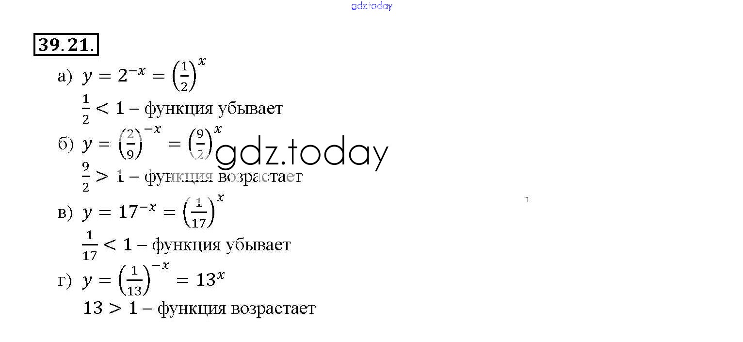 На страницах сайта gdz.today вы найдете учебный и вспомогательный материал, направленный на улучшения знаний школьной программы. ГДЗ - онлайн мир знаний §39. Показательная функция, ее свойства и график Глава 7 39. 21 Задачнику по Алгебре для 10-11 класса Мордкович, Денищева Базовый уровень Мнемозина 2015