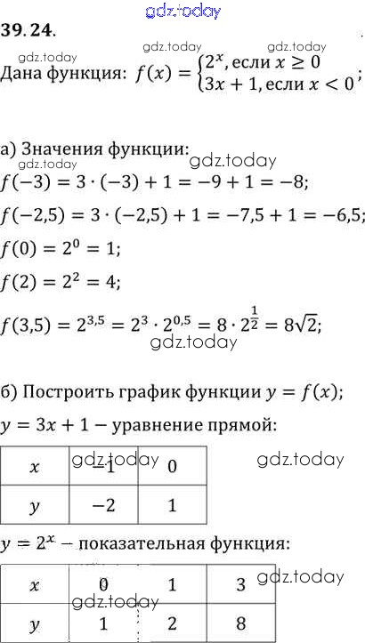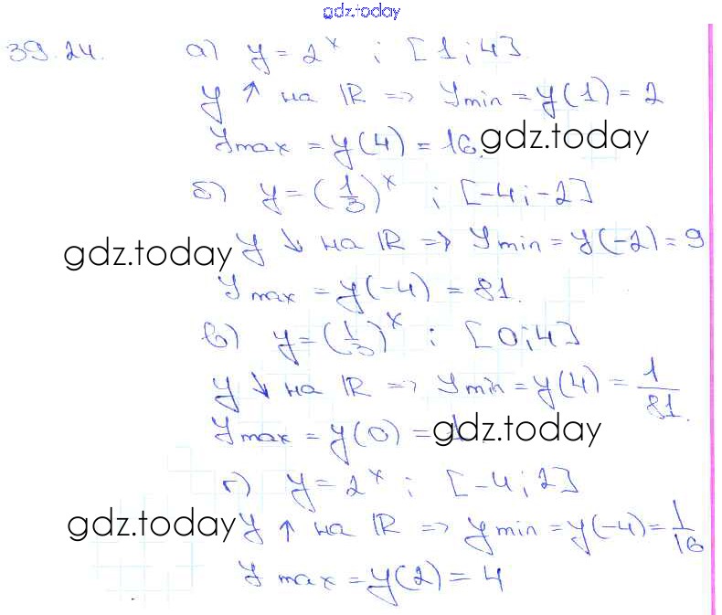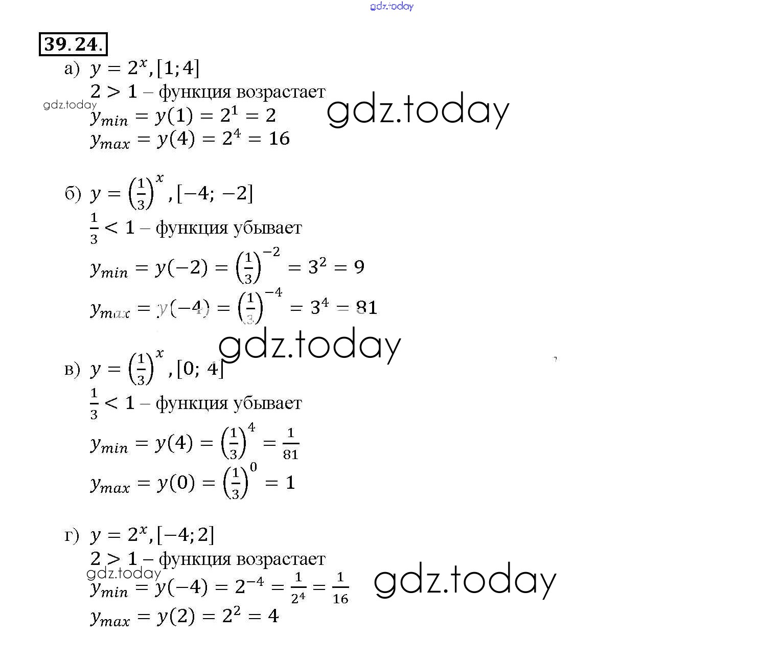Ответы к §39. Показательная функция, ее свойства и график Глава 7 39. 24 Задачнику по Алгебре для 10-11 класса Мордкович, Денищева Базовый уровень Мнемозина 2015