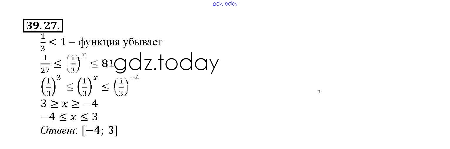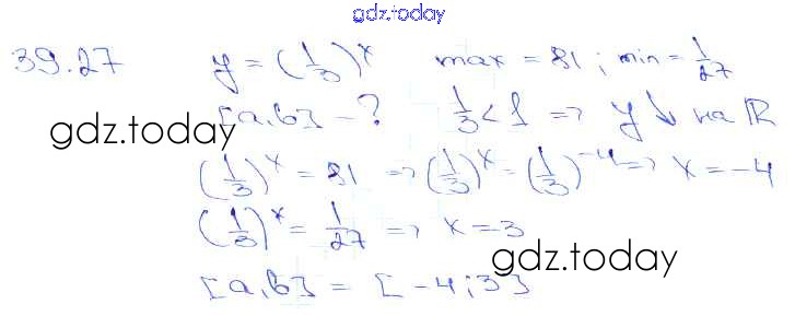 Ответы к §39. Показательная функция, ее свойства и график Глава 7 39. 27 Задачнику по Алгебре для 10-11 класса Мордкович, Денищева Базовый уровень Мнемозина 2015