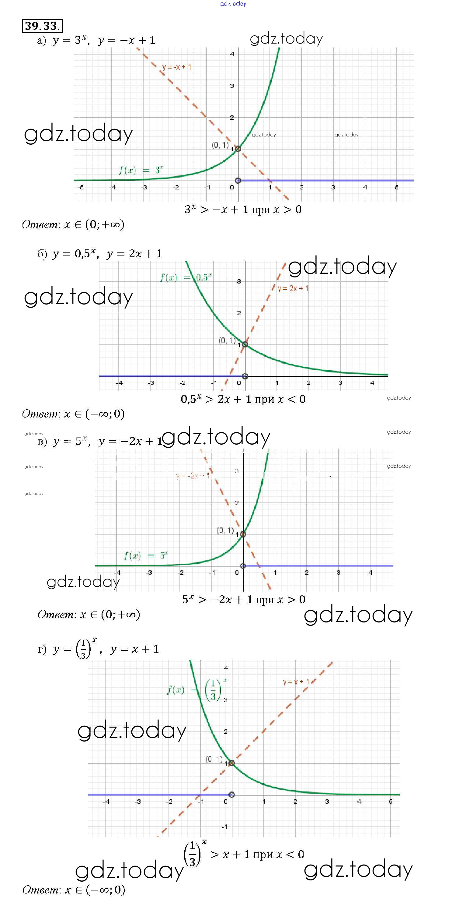 Ответы к §39. Показательная функция, ее свойства и график Глава 7 39. 33 Задачнику по Алгебре для 10-11 класса Мордкович, Денищева Базовый уровень Мнемозина 2015