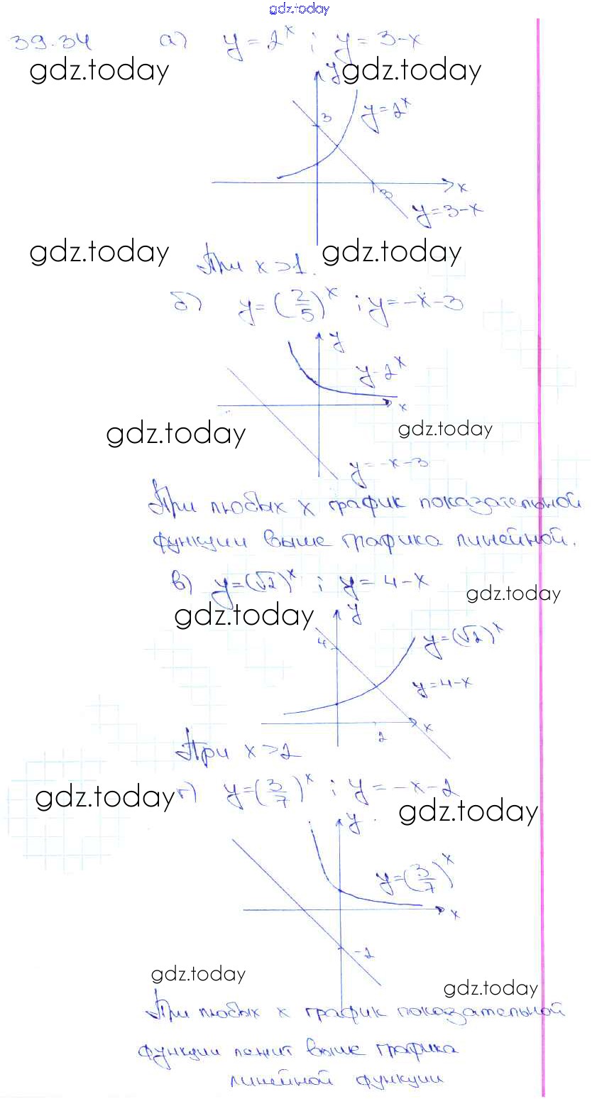 На страницах сайта gdz.today вы найдете учебный и вспомогательный материал, направленный на улучшения знаний школьной программы. ГДЗ - онлайн мир знаний §39. Показательная функция, ее свойства и график Глава 7 39. 34 Задачнику по Алгебре для 10-11 класса Мордкович, Денищева Базовый уровень Мнемозина 2015