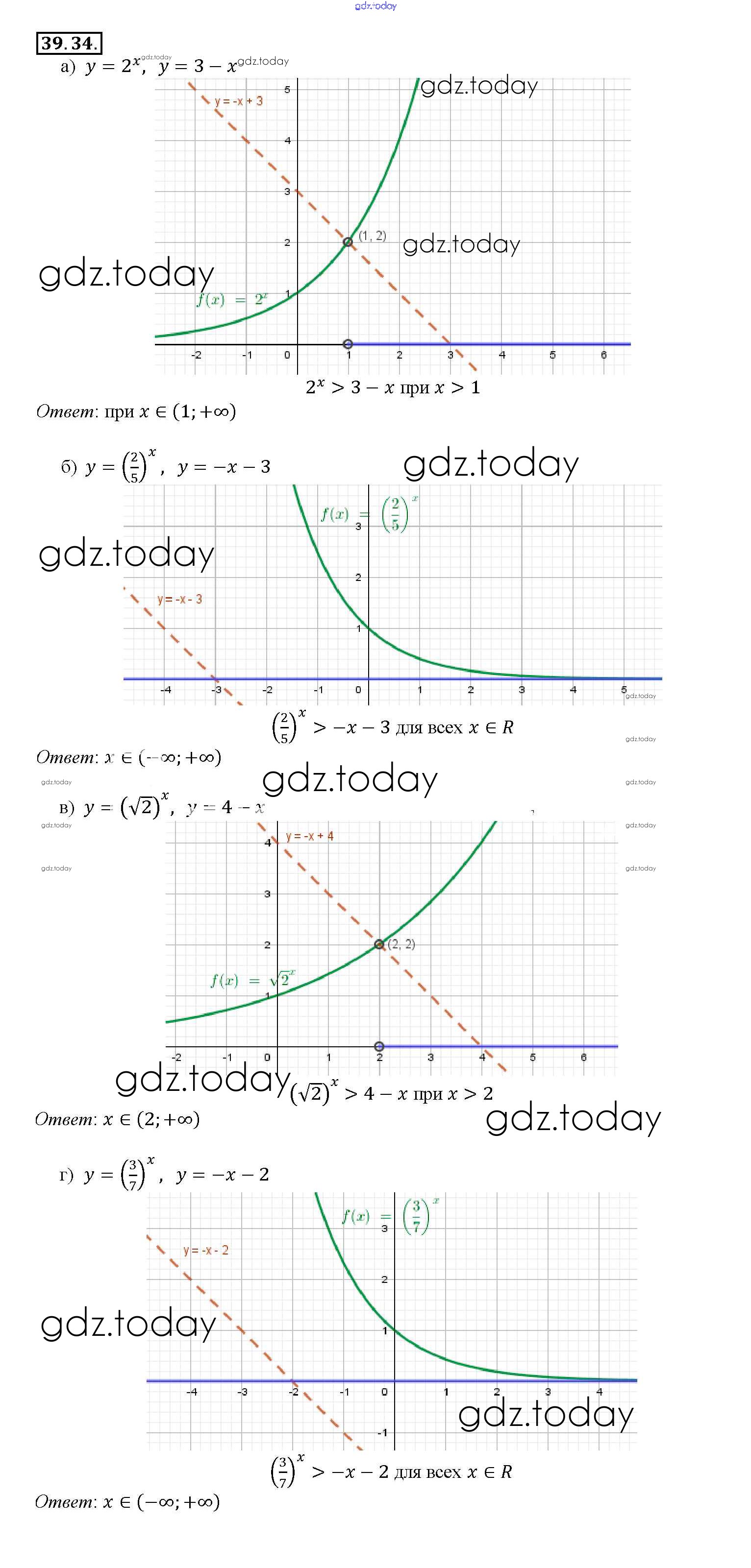 Ответы к §39. Показательная функция, ее свойства и график Глава 7 39. 34 Задачнику по Алгебре для 10-11 класса Мордкович, Денищева Базовый уровень Мнемозина 2015
