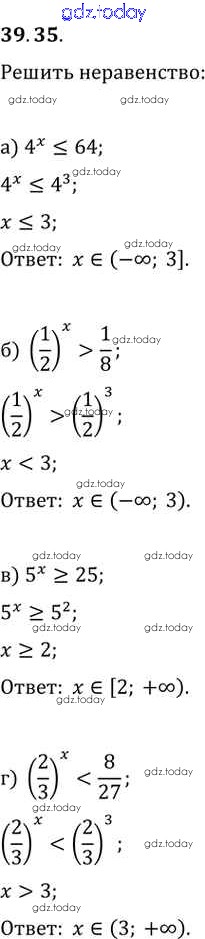 Ответы к §39. Показательная функция, ее свойства и график Глава 7 39. 35 Задачнику по Алгебре для 10-11 класса Мордкович, Денищева Базовый уровень Мнемозина 2015