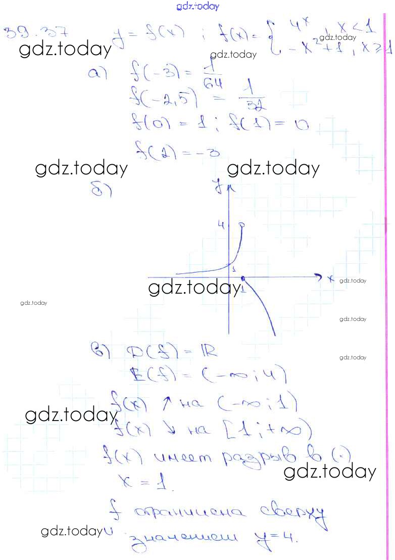 На страницах сайта gdz.today вы найдете учебный и вспомогательный материал, направленный на улучшения знаний школьной программы. ГДЗ - онлайн мир знаний §39. Показательная функция, ее свойства и график Глава 7 39. 37 Задачнику по Алгебре для 10-11 класса Мордкович, Денищева Базовый уровень Мнемозина 2015