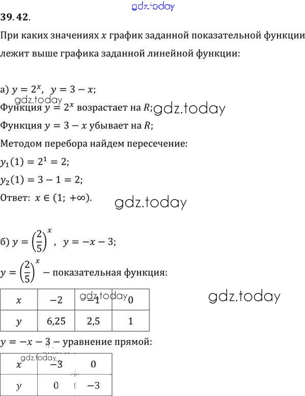 Ответы к §39. Показательная функция, ее свойства и график Глава 7 39. 42 Задачнику по Алгебре для 10-11 класса Мордкович, Денищева Базовый уровень Мнемозина 2015