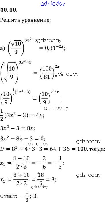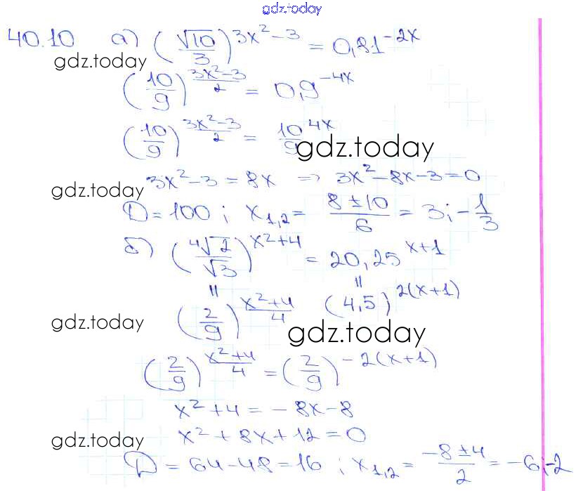 Ответы к §40. Показательные уравнения и неравенства Глава 7 40. 10 Задачнику по Алгебре для 10-11 класса Мордкович, Денищева Базовый уровень Мнемозина 2015