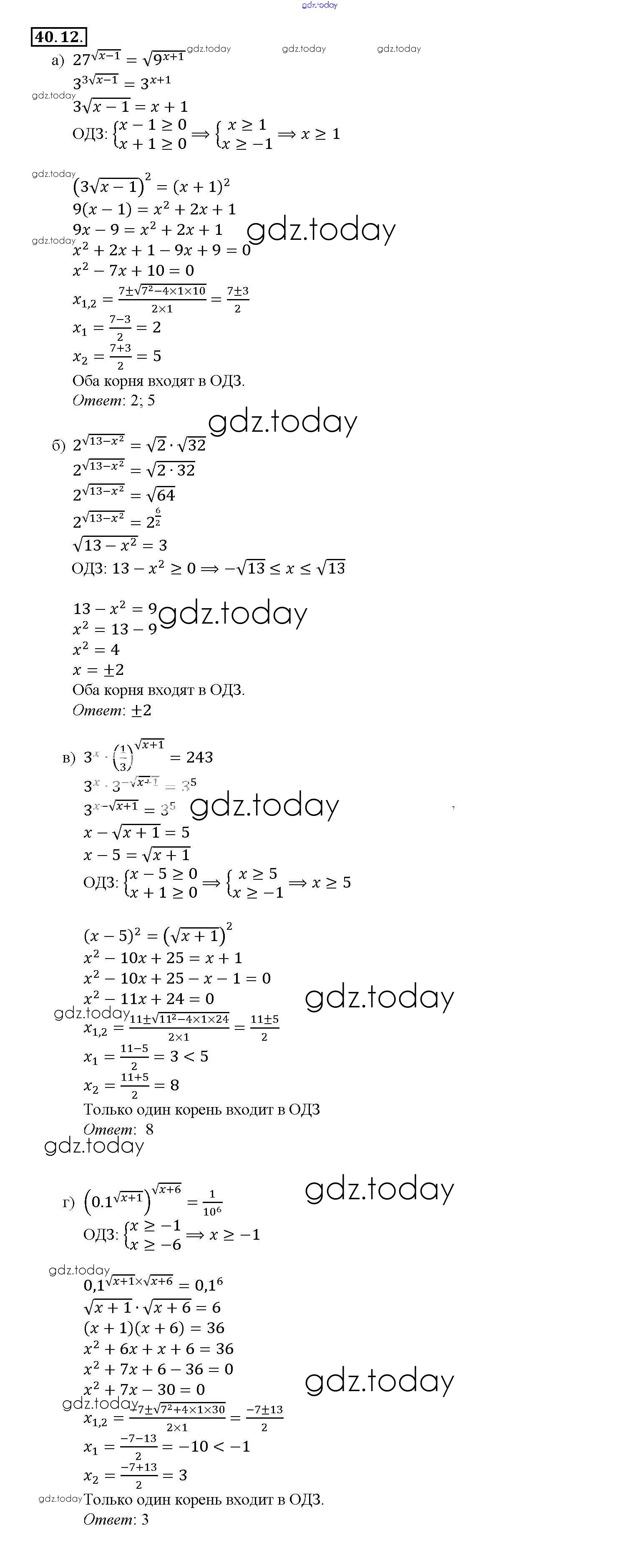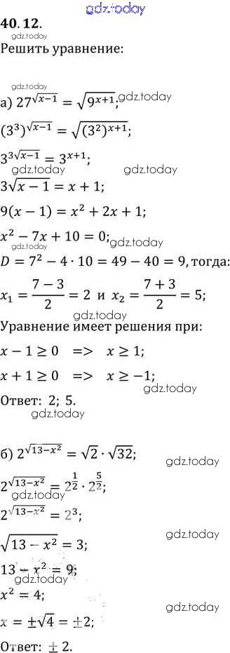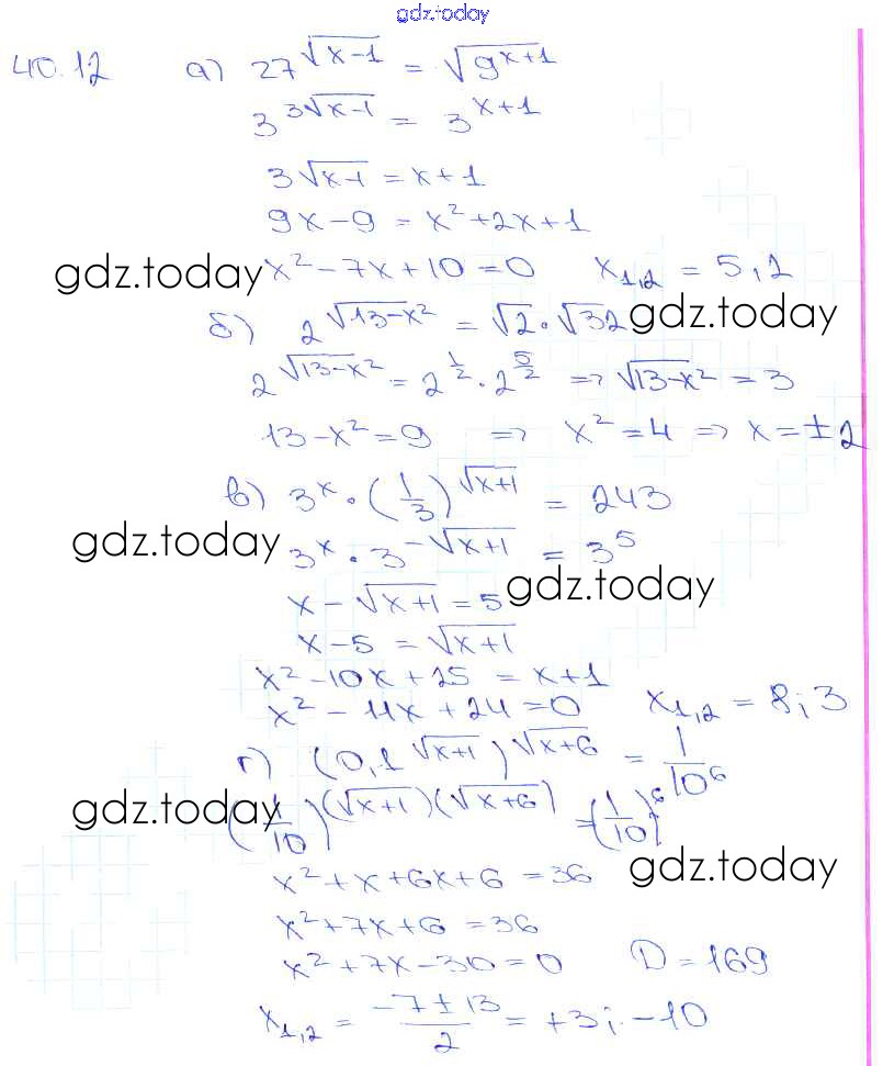На страницах сайта gdz.today вы найдете учебный и вспомогательный материал, направленный на улучшения знаний школьной программы. ГДЗ - онлайн мир знаний §40. Показательные уравнения и неравенства Глава 7 40. 12 Задачнику по Алгебре для 10-11 класса Мордкович, Денищева Базовый уровень Мнемозина 2015