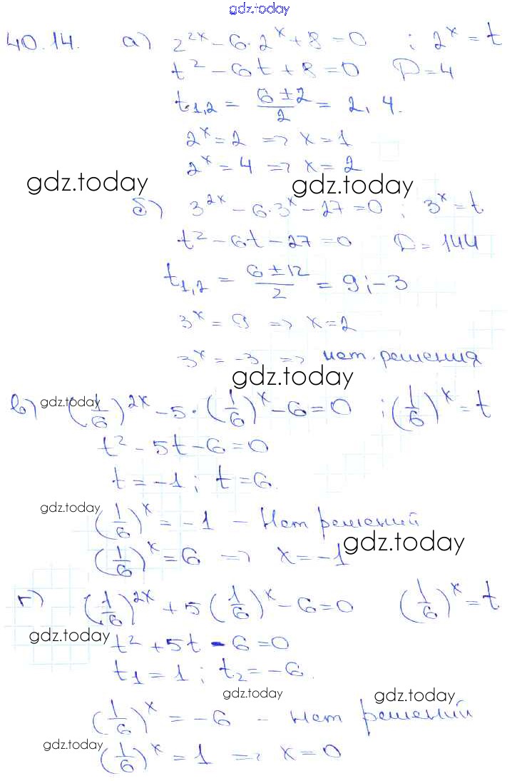На страницах сайта gdz.today вы найдете учебный и вспомогательный материал, направленный на улучшения знаний школьной программы. ГДЗ - онлайн мир знаний §40. Показательные уравнения и неравенства Глава 7 40. 14 Задачнику по Алгебре для 10-11 класса Мордкович, Денищева Базовый уровень Мнемозина 2015