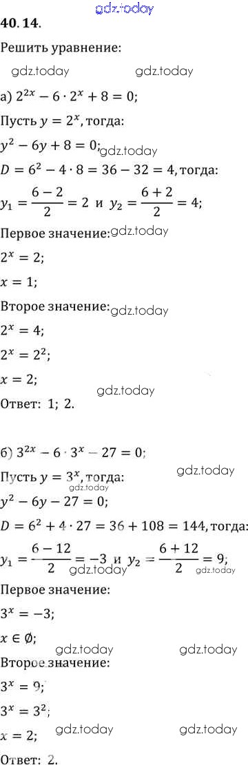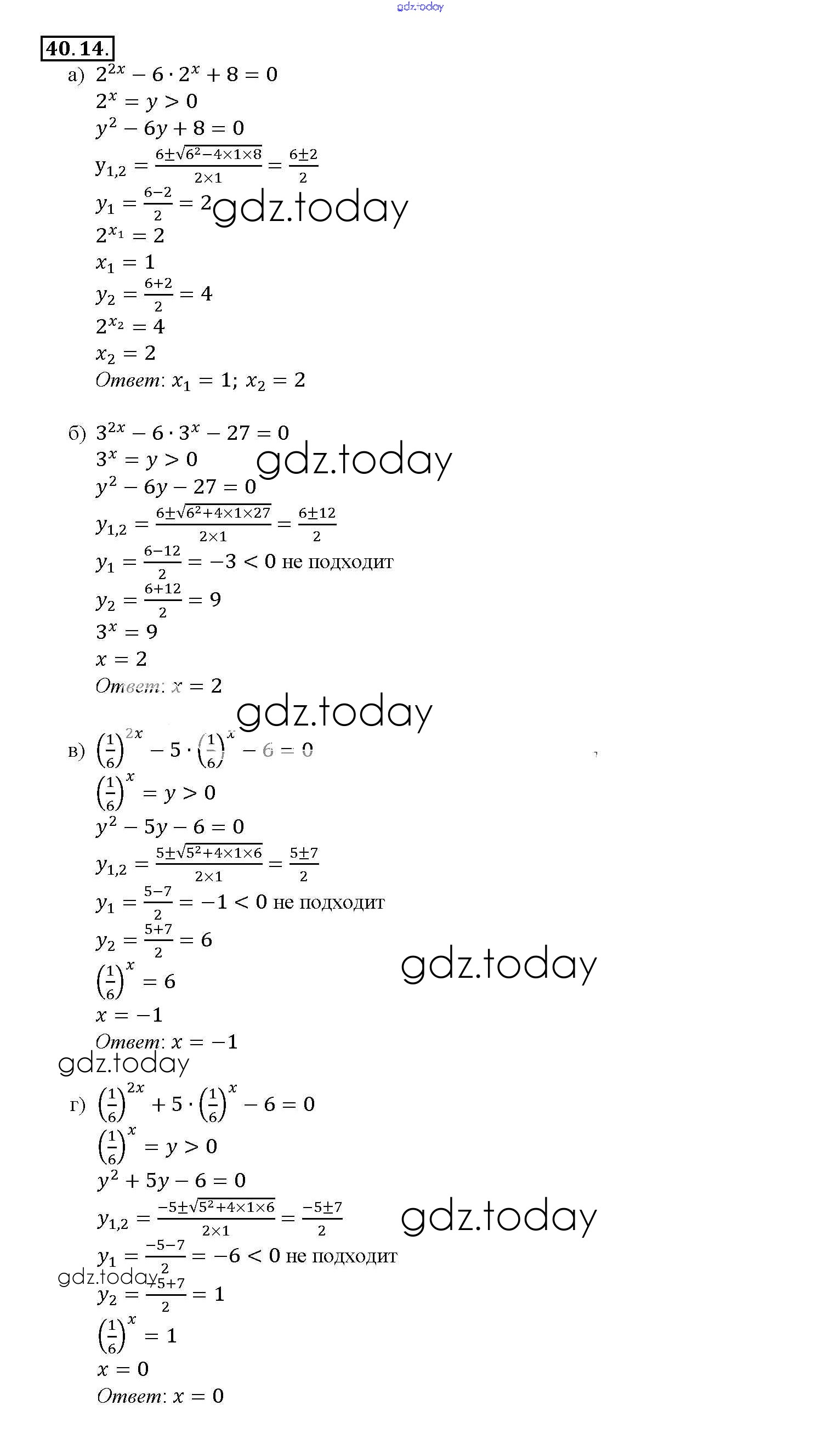 Ответы к §40. Показательные уравнения и неравенства Глава 7 40. 14 Задачнику по Алгебре для 10-11 класса Мордкович, Денищева Базовый уровень Мнемозина 2015
