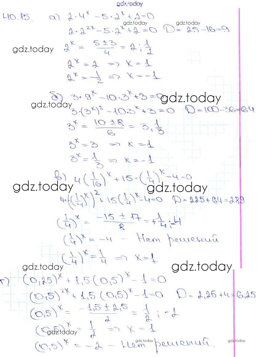 На страницах сайта gdz.today вы найдете учебный и вспомогательный материал, направленный на улучшения знаний школьной программы. ГДЗ - онлайн мир знаний §40. Показательные уравнения и неравенства Глава 7 40. 15 Задачнику по Алгебре для 10-11 класса Мордкович, Денищева Базовый уровень Мнемозина 2015