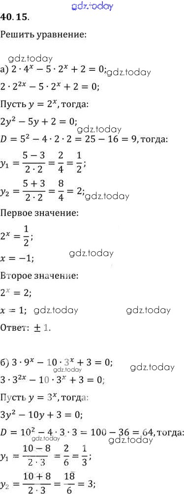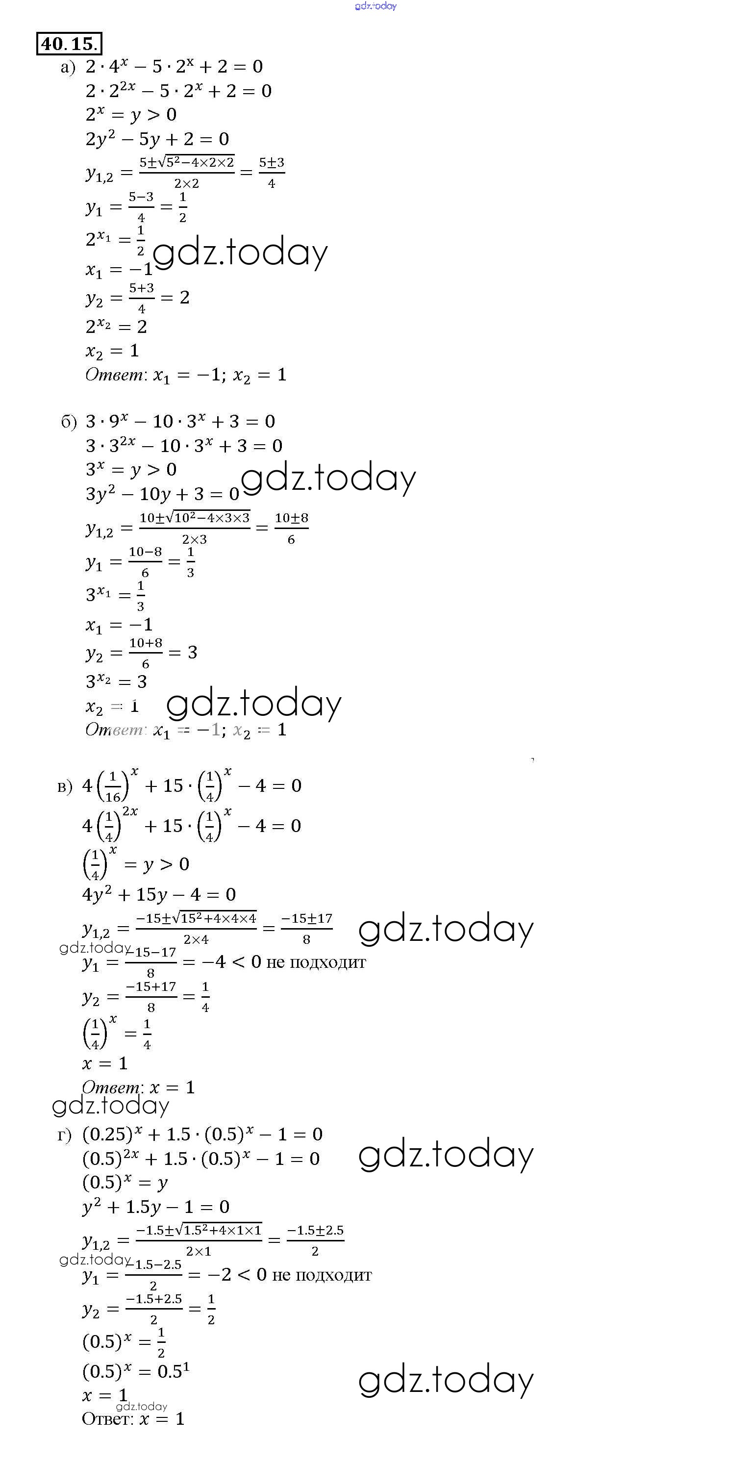 Ответы к §40. Показательные уравнения и неравенства Глава 7 40. 15 Задачнику по Алгебре для 10-11 класса Мордкович, Денищева Базовый уровень Мнемозина 2015